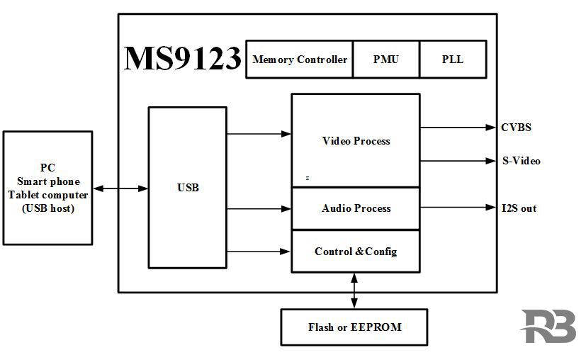 MS9123 is a single-chip USB screen projector that integrates a USB2.0 controller, data transceiver module video DAC and audio and video processing module internally. MS9123 can display or expand the display information of PCS, smart phones and tablets to larger-sized display devices through the USB interface. Supports CVBS and S-Video video interfaces.