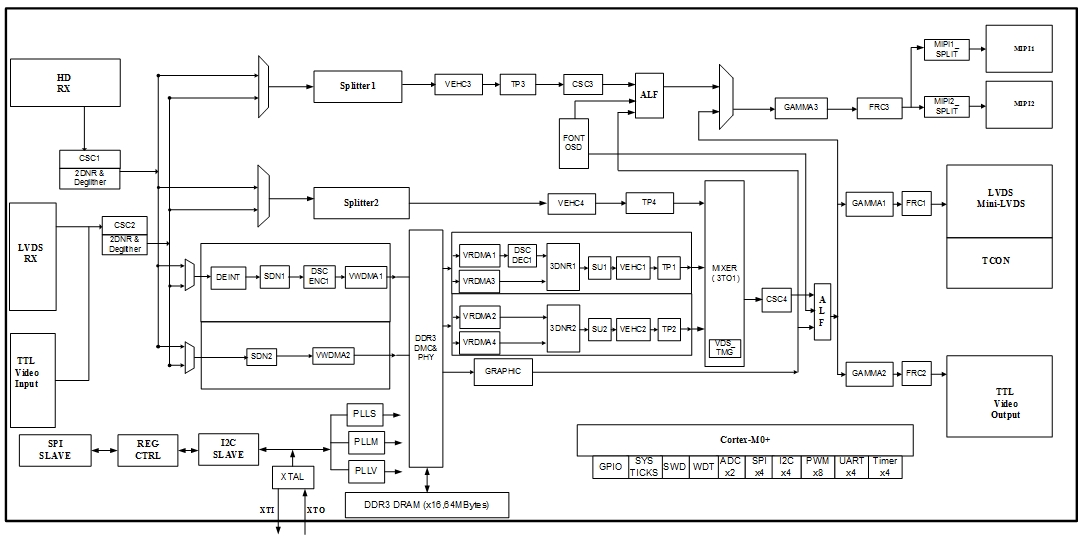 MS1861是一款視頻處理與顯示控制器,單顆芯片集成HD、LVDS和數(shù)字視頻信號(hào)輸入;輸出端可以驅(qū)動(dòng)MIPI(DSI-2)、LVDS、Mini-LVDS以及TTL類(lèi)型TFT-LCD液晶顯示。可支持對(duì)輸入視頻信號(hào)進(jìn)行濾波、圖像增強(qiáng)、銳化、對(duì)比度調(diào)節(jié)、視頻縮放、裁剪、旋轉(zhuǎn)、內(nèi)部字符(圖形)疊加、幀頻變化等處理。